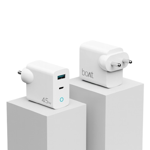 Charge your devices faster and smarter with the boAt 45W Super Fast Charger, designed to deliver high-speed power output for smartphones, tablets, earbuds, and other USB-C devices. Whether you're at home, office, or on the go, this charger ensures quick, efficient, and reliable charging every time.